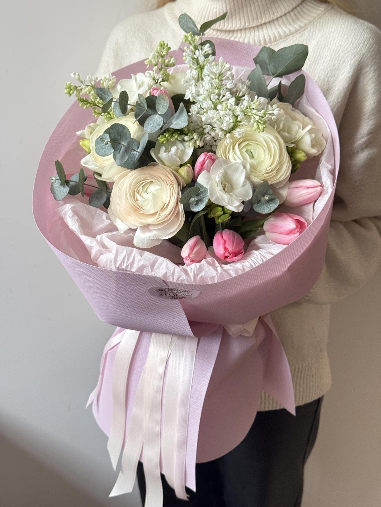 Flower shop Studio Flores offers the best Bouqets with ranunculus with delivery in Kyiv. You can buy Bouquet with ranunculus and tulips for 4170 UAH. Our flower shop offers free delivery of bouquets in Kyiv from 1500 UAH.