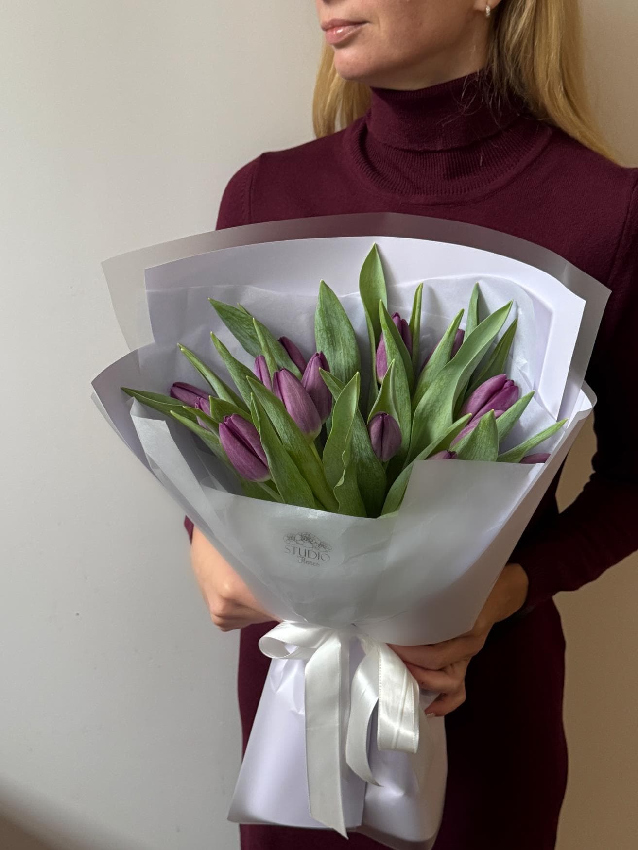 Букет цветов из 15 эффектных фиолетовых тюльпанов в стильной упаковке — именно это станет причиной улыбки на весь день. Заказать цветы можно по случаю Дня рождения, 8 Марта, Дня Валентина (День Влюбленных или 14 февраля) памятной даты, а также без повода.