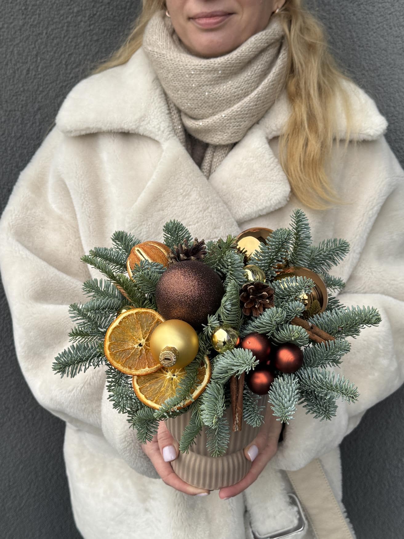 Ароматная натуральная голландская ель, стильное керамическое кашпо, новогодний декор. Новогодняя композиция выполненная в эко стиле украсит ваш офис и принесет атмосферу праздника.