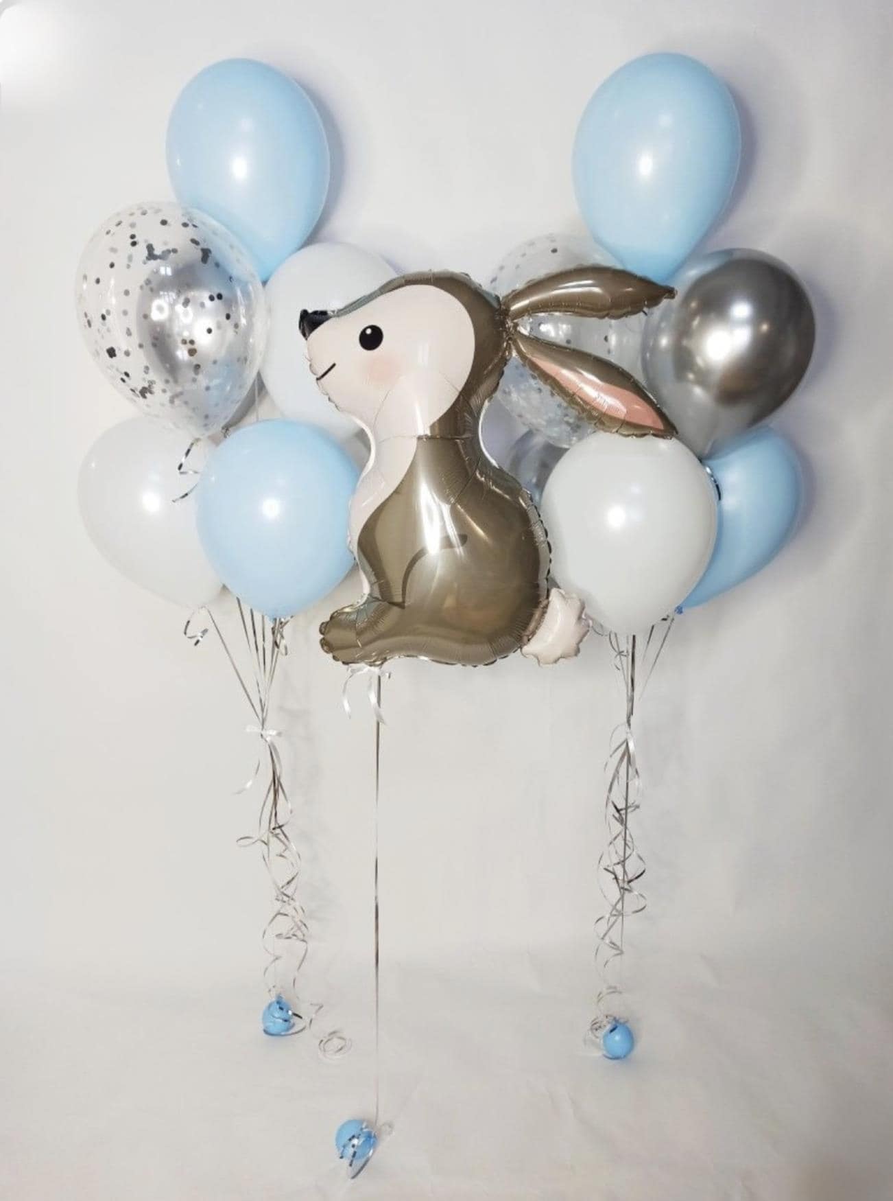 Склад: фігурка у вигляді кролика, 8 латексних куль, 2 кулі з конфетті та 4 хромовані кулі.